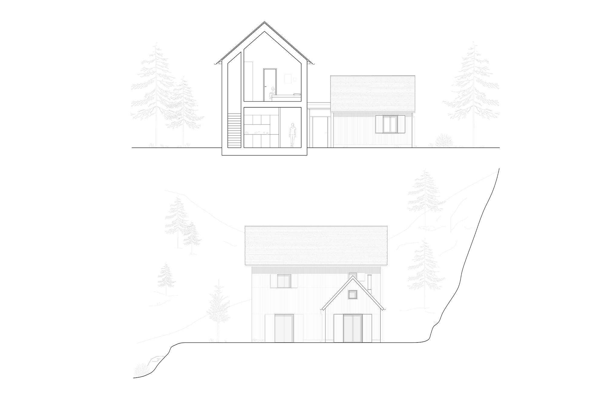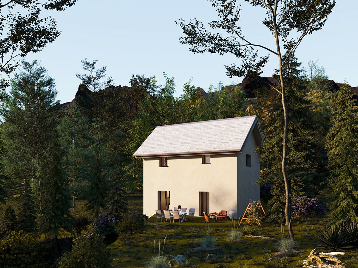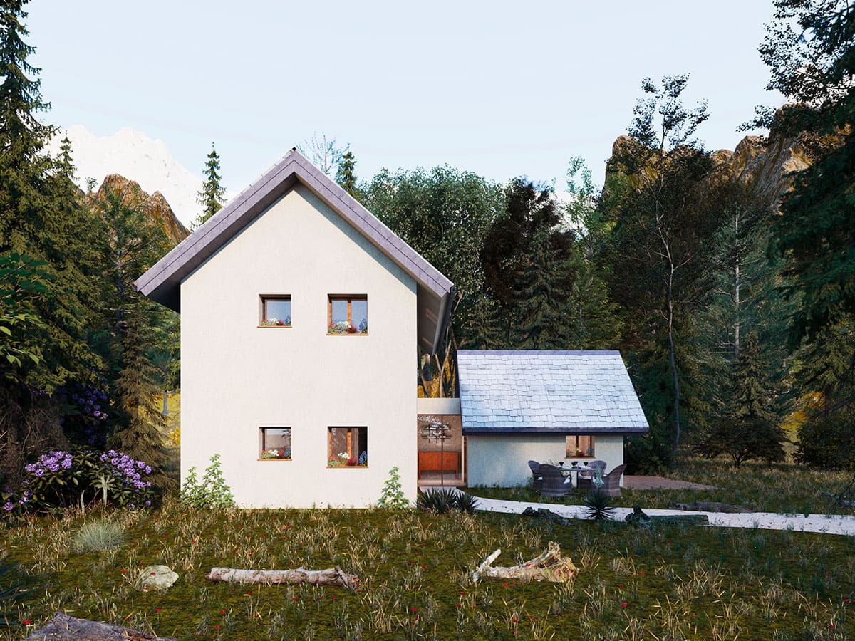 La casa alpina si erge fieramente tra le imponenti vette alpine, offrendo un rifugio accogliente e caratteristico in mezzo alla natura selvaggia.
