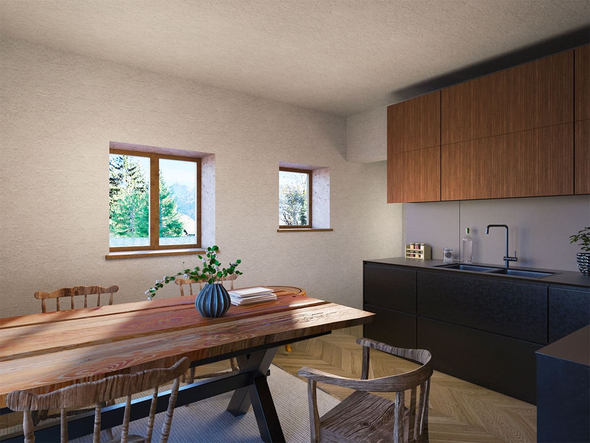 All’esterno, l’ampia terrazza naturale permette di godere della vista mozzafiato sulle montagne circostanti e di trascorrere piacevoli momenti all’aria aperta durante i mesi estivi.